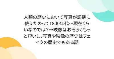 人類の歴史において写真が証拠に使えたのって1800年代~現在くらいなのでは?→映像はおそらくもっと短いし、写真や映像の歴史はフェイクの歴史でもある話