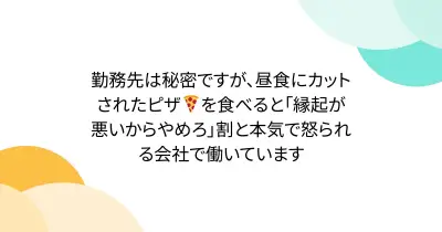 勤務先は秘密ですが、昼食にカットされたピザ🍕を食べると「縁起が悪いからやめろ」割と本気で怒られる会社で働いています