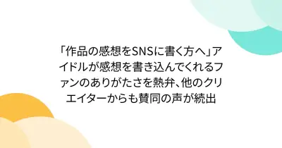 「作品の感想をSNSに書く方へ」アイドルが感想を書き込んでくれるファンのありがたさを熱弁、他のクリエイターからも賛同の声が続出