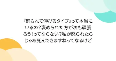 『怒られて伸びるタイプ』って本当にいるの?褒められた方が次も頑張ろう!ってならない?私が怒られたらじゃあ死んできますねってなるけど