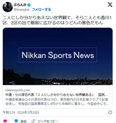 中道・小川淳也代表「2人にしか分かり合えない世界観ある」 国民・玉木雄一郎代表にラブコール