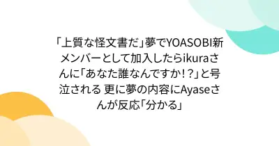 「上質な怪文書だ」夢でYOASOBI新メンバーとして加入したらikuraさんに「あなた誰なんですか!?」と号泣される 更に夢の内容にAyaseさんが反応「分かる」