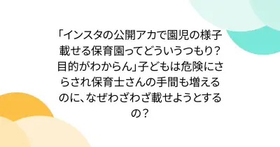 「インスタの公開アカで園児の様子載せる保育園ってどういうつもり?目的がわからん」子どもは危険にさらされ保育士さんの手間も増えるのに、なぜわざわざ載せようとするの?
