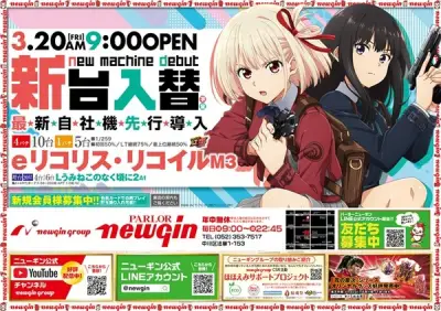 【朗報】ニューギン直営店にて「eリコリス・リコイル」の先行導入がスタート!名古屋勢羨ましいな!!!