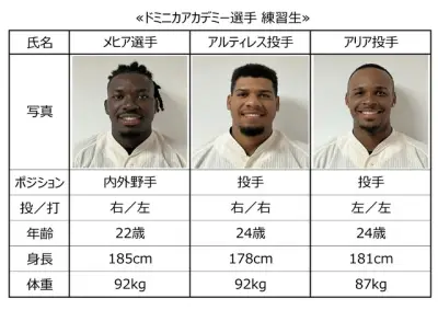 ドミニカカープアカデミー練習生『メヒア&アルティレス&アリア』が来日決定!