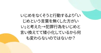 いじめをなくそうと行動するより「いじめという言葉を無くした方がいい」と考えた→犯罪行為をいじめと言い換えてて矮小化しているから何も変わらないのではないか?