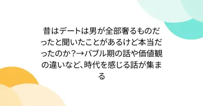 昔はデートは男が全部奢るものだったと聞いたことがあるけど本当だったのか?→バブル期の話や価値観の違いなど、時代を感じる話が集まる