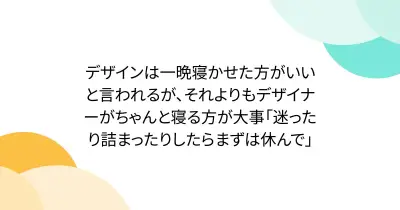 デザインは一晩寝かせた方がいいと言われるが、それよりもデザイナーがちゃんと寝る方が大事「迷ったり詰まったりしたらまずは休んで」