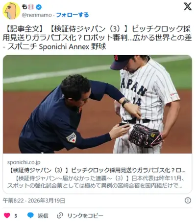 ピッチクロック採用見送り、飲食やグッズ販売で球場に観客が長く滞在することを望む球団が固辞…打者と投手の「間」を大切にする文化