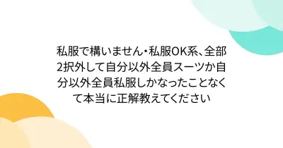 私服で構いません・私服OK系、全部2択外して自分以外全員スーツか自分以外全員私服しかなったことなくて本当に正解教えてください