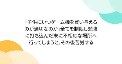 「子供にいつゲーム機を買い与えるのが適切なのか」全てを制限し勉強に打ち込んだ末に不相応な場所へ行ってしまうと、その後苦労する