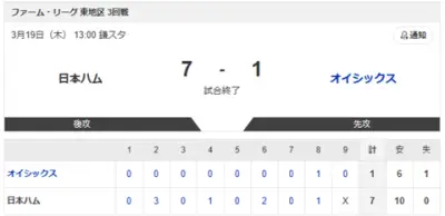 【vs.オイシックス 東地区 3回戦】7-1で勝利