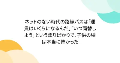 ネットのない時代の路線バスは「運賃はいくらになるんだ」「いつ両替しよう」という焦りばかりで、子供の頃は本当に怖かった