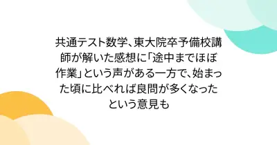 共通テスト数学、東大院卒予備校講師が解いた感想に「途中までほぼ作業」という声がある一方で、始まった頃に比べれば良問が多くなったという意見も