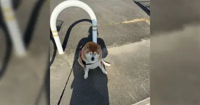 散歩中に知らない犬のうんこを踏み潰してしまった柴犬の表情が完全に「><」→「なんて可愛い顔」「リアルで><この目初めて見た」