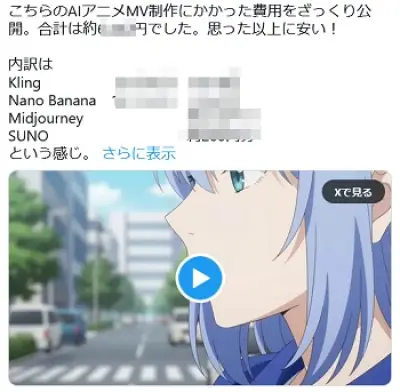 【驚愕】AIアニメMV制作にかかった費用wwwwwwww