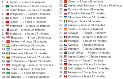 睡眠時間が最も短い国ランキング 日本が1位で唯一6時間を切る…