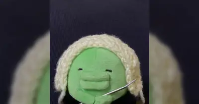 くちぱっちに毛糸の帽子を編んでいたところ、途中でカツラが出来てしまい、見事に「音楽室の肖像画」になってしまった