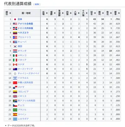 WBC通算成績、日本がダントツwww
