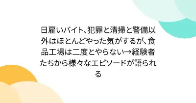 日雇いバイト、犯罪と清掃と警備以外はほとんどやった気がするが、食品工場は二度とやらない→経験者たちから様々なエピソードが語られる