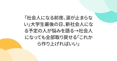 「社会人になる前夜、涙が止まらない」大学生最後の日、新社会人になる予定の人が悩みを語る→社会人になっても全部取り戻せる「これから作り上げればいい」