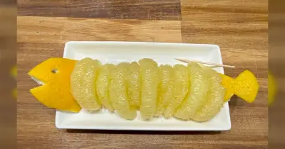 「文旦を剥いてくれた旦那の発想が最高すぎる」文旦が活造りのような仕上がりでめっちゃ可愛い、他にも遊び心あふれる剥かれた文旦がいっぱい