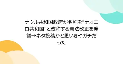 ナウル共和国政府が名称を”ナオエロ共和国”と改称する憲法改正を発議→ネタ投稿かと思いきやガチだった