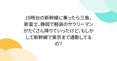 19時台の新幹線に乗ったら三島、新富士、静岡で軽装のサラリーマンがたくさん降りていったけど、もしかして新幹線で東京まで通勤してるの?