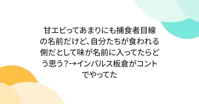 甘エビってあまりにも捕食者目線の名前だけど、自分たちが食われる側だとして味が名前に入ってたらどう思う?→インパルス板倉がコントでやってた