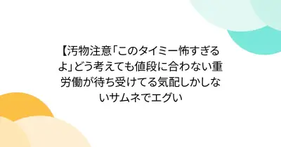 【汚物注意「このタイミー怖すぎるよ」どう考えても値段に合わない重労働が待ち受けてる気配しかしないサムネでエグい