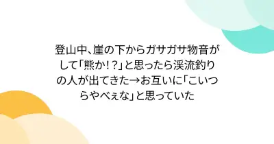 登山中、崖の下からガサガサ物音がして「熊か!?」と思ったら渓流釣りの人が出てきた→お互いに「こいつらやべぇな」と思っていた