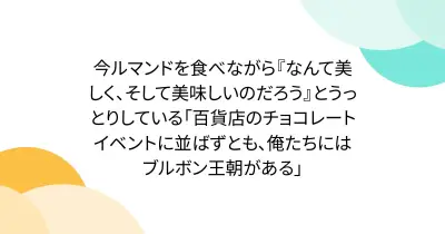 今ルマンドを食べながら『なんて美しく、そして美味しいのだろう』とうっとりしている「百貨店のチョコレートイベントに並ばずとも、俺たちにはブルボン王朝がある」