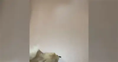 「ジャーキーを完全包囲するポメラニアン」プロのような軌道でジャーキーの周りをドリフト走行する犬動画