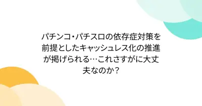 パチンコ・パチスロの依存症対策を前提としたキャッシュレス化の推進が掲げられる…これさすがに大丈夫なのか?