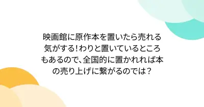 映画館に原作本を置いたら売れる気がする!わりと置いているところもあるので、全国的に置かれれば本の売り上げに繋がるのでは?