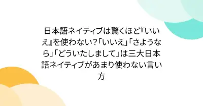 日本語ネイティブは驚くほど『いいえ』を使わない?「いいえ」「さようなら」「どういたしまして」は三大日本語ネイティブがあまり使わない言い方