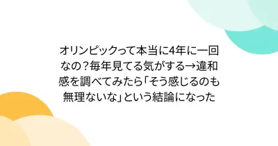 オリンピックって本当に4年に一回なの?毎年見てる気がする→違和感を調べてみたら「そう感じるのも無理ないな」という結論になった