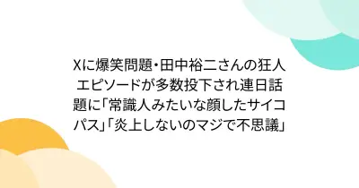 Xに爆笑問題・田中裕二さんの狂人エピソードが多数投下され連日話題に「常識人みたいな顔したサイコパス」「炎上しないのマジで不思議」