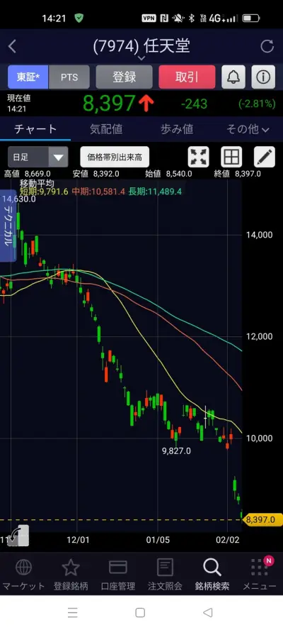 【悲報】任天堂さん、とんでもないチャートを形成してしまう…