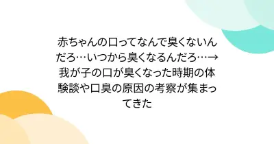 赤ちゃんの口ってなんで臭くないんだろ…いつから臭くなるんだろ…→我が子の口が臭くなった時期の体験談や口臭の原因の考察が集まってきた