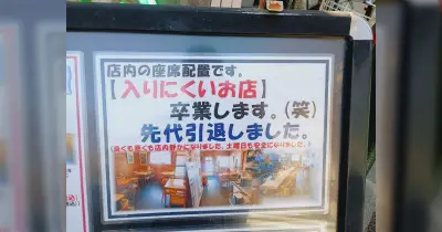 洋食屋さんに『先代引退しました!入りにくいお店卒業します(笑)土曜日も安全になりました」という気になる掲示が...こんなものを見たら入らざるを得ないじゃ無いですか