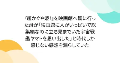 『超かぐや姫!』を映画館へ観に行った母が「映画館に人がいっぱいで総集編なのに立ち見までいた宇宙戦艦ヤマトを思い出した」と時代しか感じない感想を漏らしていた