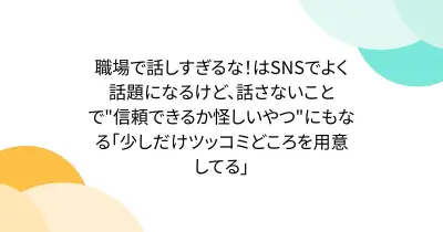 職場で話しすぎるな!はSNSでよく話題になるけど、話さないことで"信頼できるか怪しいやつ"にもなる「少しだけツッコミどころを用意してる」