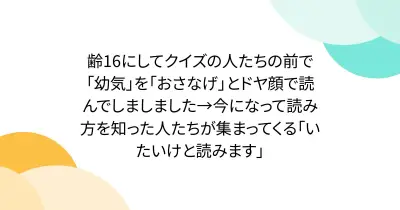 齢16にしてクイズの人たちの前で「幼気」を「おさなげ」とドヤ顔で読んでしましました→今になって読み方を知った人たちが集まってくる「いたいけと読みます」