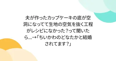 夫が作ったカップケーキの底が空洞になってて生地の空気を抜く工程がレシピになかった?って聞いたら...→「ちいかわのどなたかと結婚されてます?」
