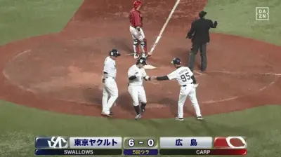【ヤクルト対広島1回戦】ヤクルト・増田珠、広島・鈴木から今季第1号2ランホームラン!リードを6点に広げる!!!!!!!!!!