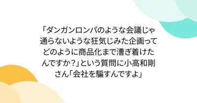「ダンガンロンパのような会議じゃ通らないような狂気じみた企画ってどのように商品化まで漕ぎ着けたんですか?」という質問に小高和剛さん「会社を騙すんですよ」