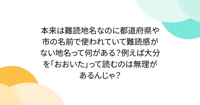 本来は難読地名なのに都道府県や市の名前で使われていて難読感がない地名って何がある?例えば大分を「おおいた」って読むのは無理があるんじゃ?