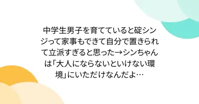 中学生男子を育てていると碇シンジって家事もできて自分で置きられて立派すぎると思った→シンちゃんは「大人にならないといけない環境」にいただけなんだよ…