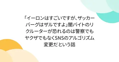 「イーロンはすごいですが、ザッカーバーグはザルですよ」闇バイトのリクルーターが恐れるのは警察でもヤクザでもなくSNSのアルゴリズム変更だという話